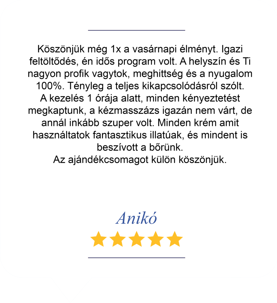 – 70 perc teljes relaxálás, ami csak rólatok szól